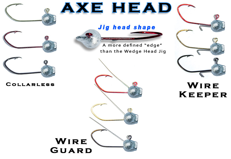 Premium AXE HEAD Jigs - wire keeper, wire guard or collarless Sickle Hook Jig Head