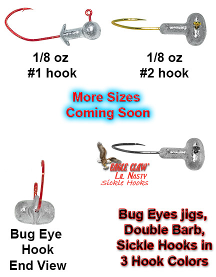 Custom Unpainted, Multiple Jig Weights, Eagle Claw Sickle hooks available in 3 colors!!