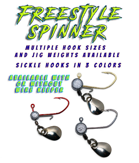 Premium FREESTYLE SPINNER Head - with or without Wire Keeper, Collarless Sickle Hook Jig Head