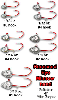 Premium Recessed Eye Minnow Head - Wire Keeper or Collarless Sickle Hook Jig Head