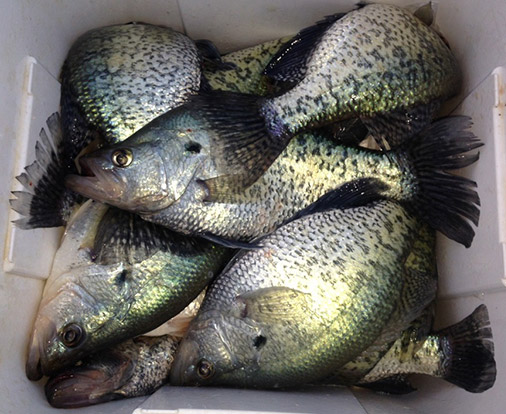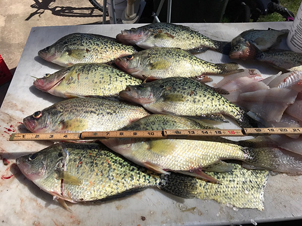 really produced some nice fish. We caught most of our crappie by spider rigging in 5' feet of water along the channel edges.