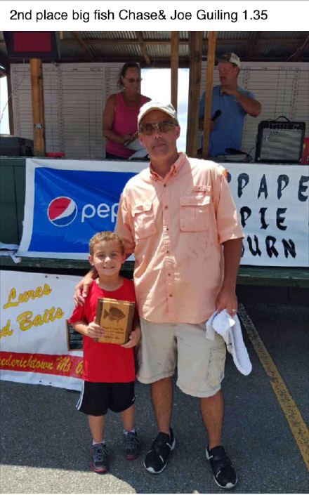 Joe Guiling writes to tell us "The 1/8 ounce BugEyes jig helped the father and son Guiling team to a good day on Wappappello Lake with a 2nd place big fish weighing in at 1.35 lbs." Congratulations to the Guiling Team!!!