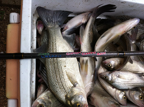 Awesome Spinning rod!! I really gave the Simply Crappie SCGC 7 Graphite/Carbon Med/Light 7ft spinning rod a workout a couple of days ago. These white bass are real fighters especially in the swift tail waters below a spillway. The SCGC 7 did a great job, is lightweight with a nice backbone, really strong, durable and is very sensitive also. I combined the SCGC 7 with a Pflueger Trion TR130B spinning reel to make a great combination for this action packed fishing trip. Nice job Bugman on the rods!!