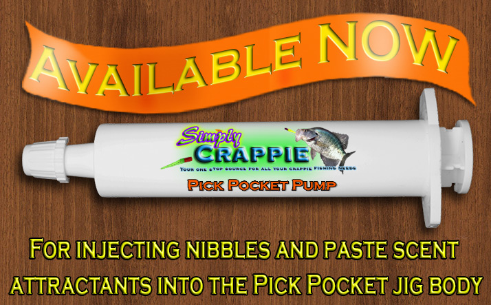 AVAILABLE NOW!!!.. The PICK POCKET PUMP, designed with the nibble/paste scent attractant fisherman in mind. For injecting nibbles and paste scentnot-allowed attractants into Pick Pocket jig bodies and many other styles of jig bodies. No more nibbles squished all over the carpet of your boat, with the Pick Pocket Pump, all your nibbles or paste scent attractants are neatly kept in the pump for easy injection into your favorite Pick Pocket jig. Click here to get your Pick Pocket Pump!