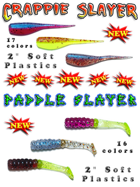 Simply Crappie introduces 2 NEW soft plastics styles and NEW colors for 2024 Check out the 2" Crappie Slayer and the 2" Paddle Slayer soft plastics in NEW colors for 2024.
