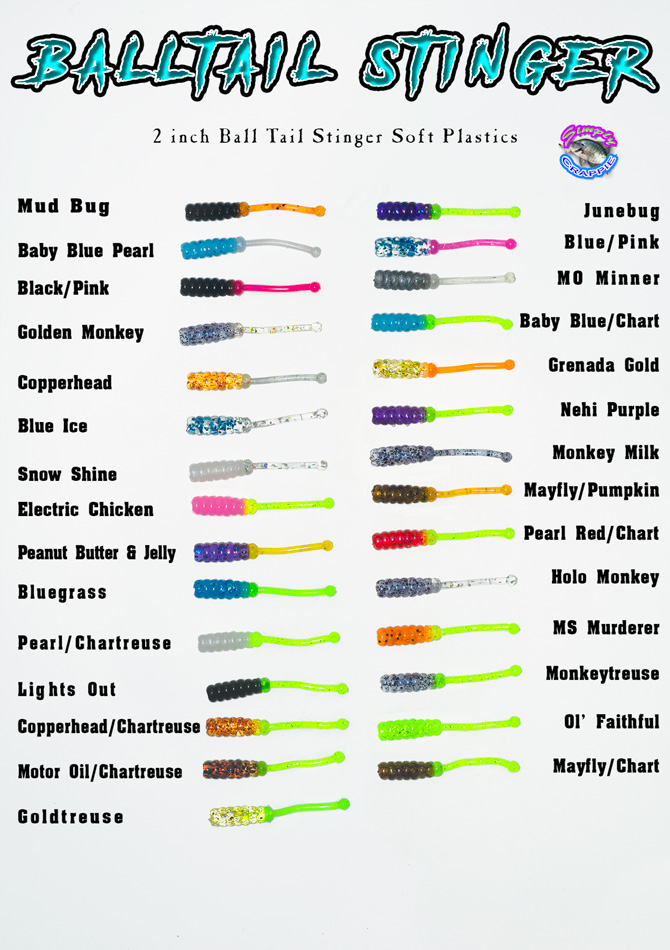 Available in many crappie catching colors.